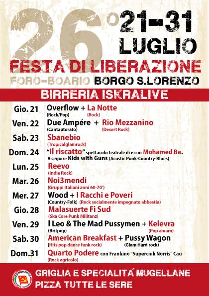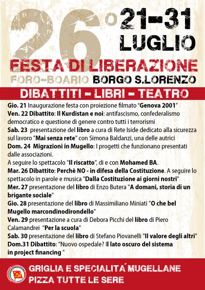 Da Giovedì 21 a Domenica 31 Luglio a Borgo San Lorenzo (FI) prenderà il via la Festa di Liberazione, giunta alla sua ventiseiesima edizione.
